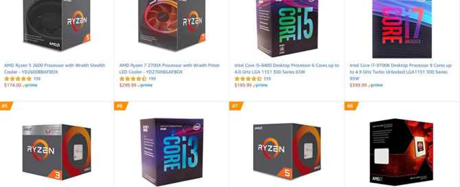 AMD vs Intel | AMD Now Dominates Amazon Best Sellers in Computer CPU Processors Among the top sellers in CPU category AMD now dominated the top 10 CPUs by 6 out of 10 in Amazon store. AMD Ryzen 5 2600 and AMD Ryzen … Continue reading AMD vs Intel | AMD Now Dominates Amazon Best Sellers in Computer CPU Processors