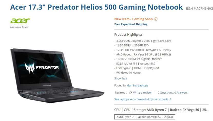 Coming Soon AMD Vega & Ryzen High-end Gaming Laptop | Acer 17.3″ Predator Helios 500 Gaming Notebook, Preorder open