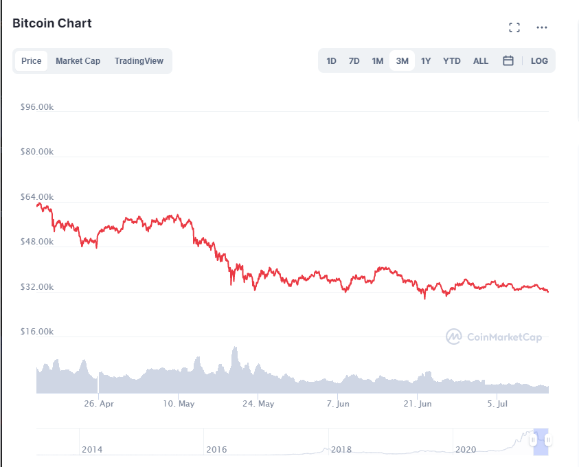 Right now Bitcoin is at about $32k and it will likely go below even $31k in the next couple of hours. This is not unpresented for BTC as before we have seen it dip to really low prices; for example a couple weeks ago BTC even dipped down to $29k. A dip below $30k would not mean that the crypto market is absolutely done for but if it dips down even lower to about $28k or so it would mean bad news for crypto investors.